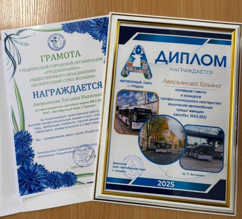 В Гродно наградили лучших специалистов Автобусного парка по итогам конкурса профмастерства 2025